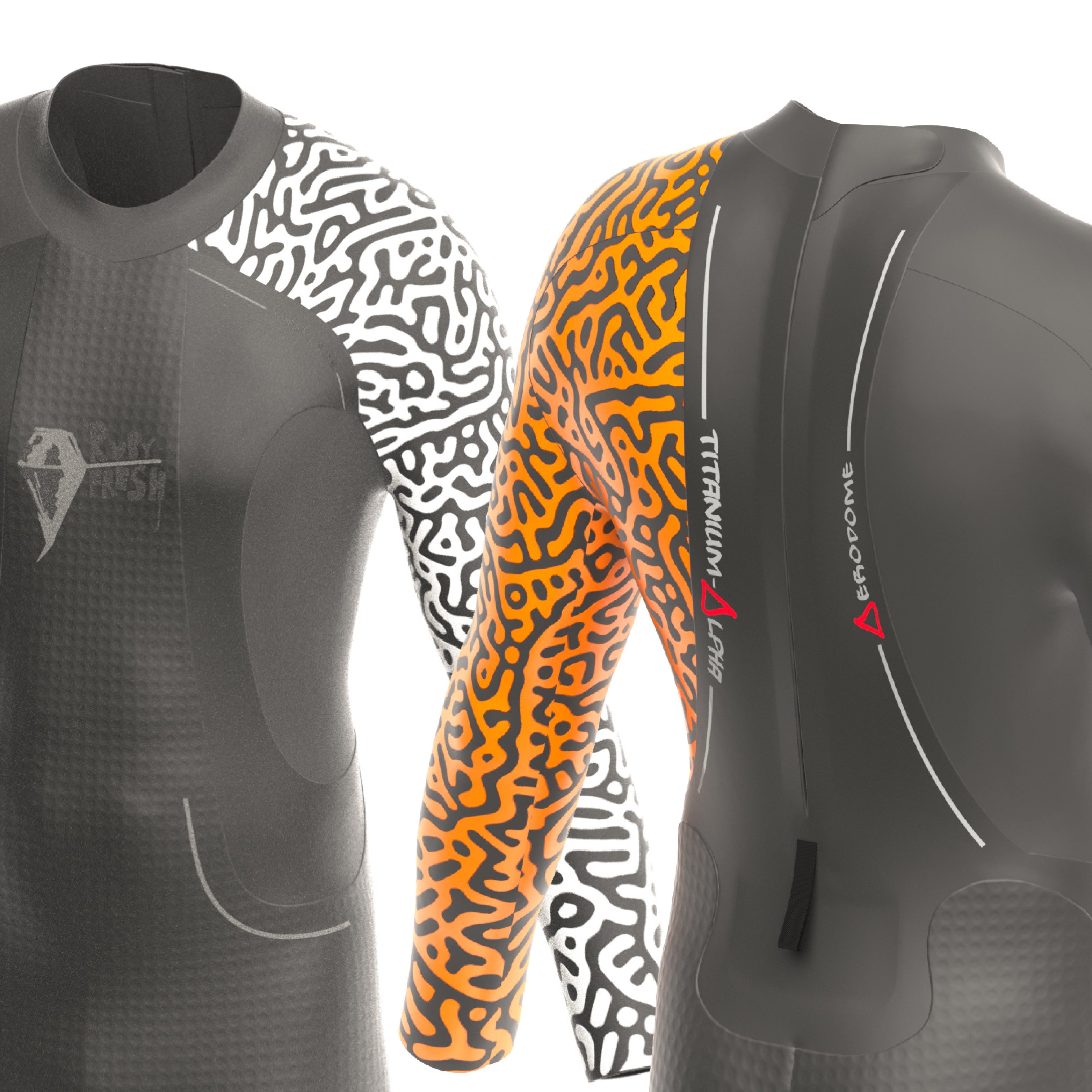 With the increase in recreational water activities, it makes sense to be as clearly visible as possible. Arm and latimus dorsi panels, made from super-supple Yamamoto #40 SCS limestone neoprene, feature our vivid coral print, using a thin water-based ink in either a hi-vis pink (Version 2 only) or orange. There is an alternative and equally visible white version. Compared to other wetsuits, they stand out far more in the water, aiding visibility and thus safety.